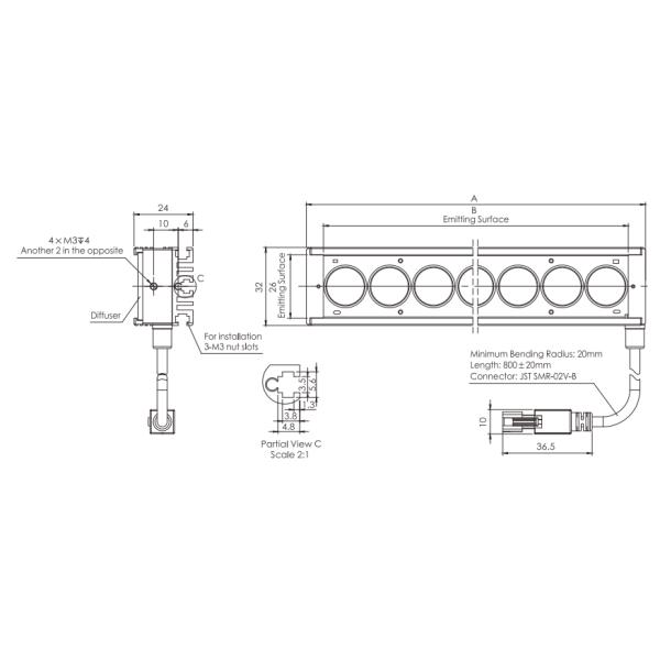 Machine Vision Bar Lights 24V/9W 378mm Emitting Length 1 Channel Machine Vision Bar Lights Image Scanning OPT-LIA Series OPT-LIA39232